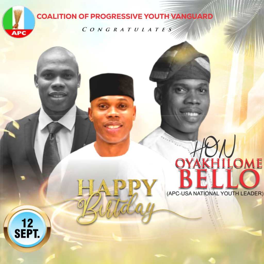 Happy birthday, Hon Bello Oyhakilome the APC National Youth Leader USA.